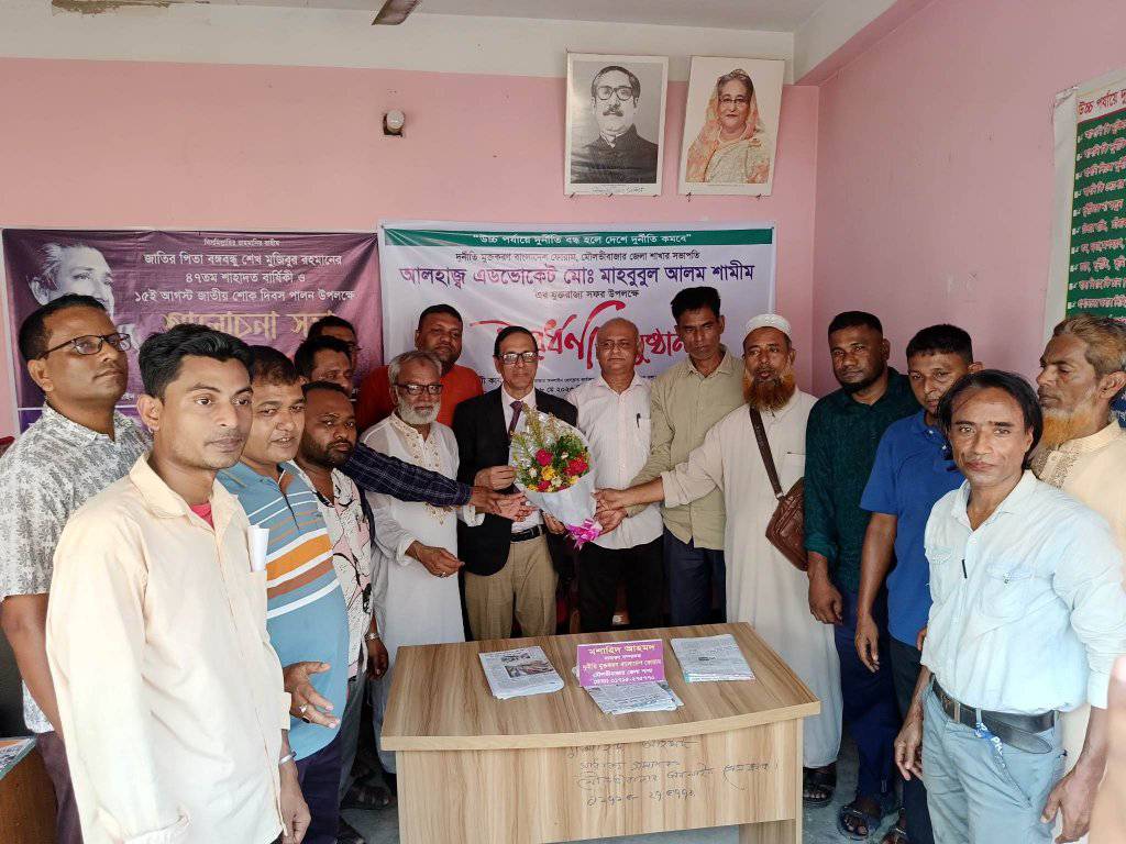 মৌলভীবাজারে দুর্নীতি মুক্তকরণ বাংলাদেশ ফোরাম, মৌলবীবাজার জেলা শাখার সভাপতি এডভোকেট মাহবুবুল আলম শামীম যুক্তরাজ্য সফর উপলক্ষ্যে সংবর্ধনা প্রদান করা হয়েছে, মৌলভীবাজার অনলাইন প্রেসক্লাব কার্যালয়ে আজ ৮ মে বিকালে।