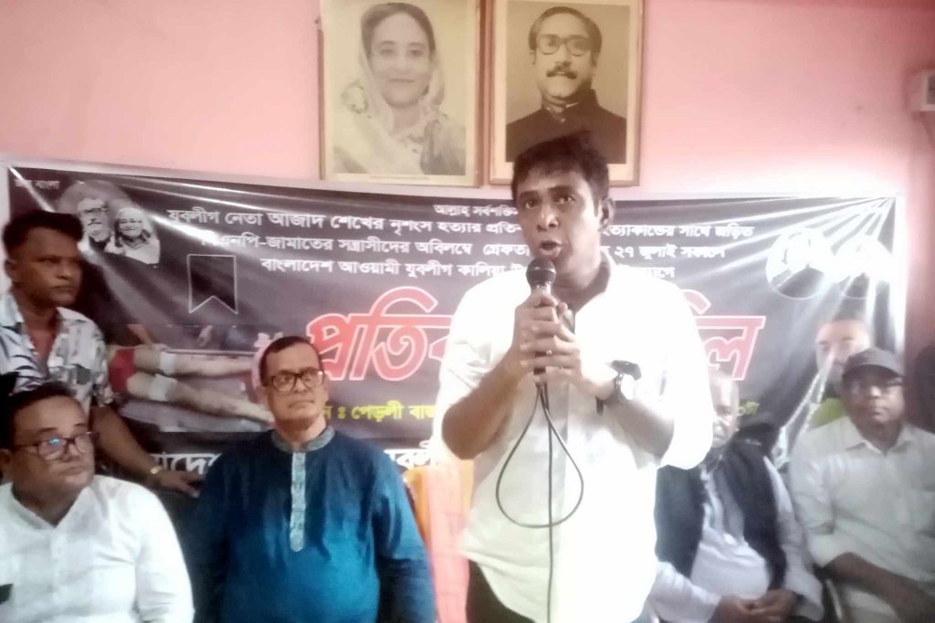 বক্তব্যে বক্তারা ও এলাকাবাসী প্রতিবাদ মিছিলে দাবী করেন যুবলীগ নেতা আজাদ শেখ হত্যা মামলাটি দ্রুত ট্রাইব্যুনালে নিয়ে বিচার করতে হবে।