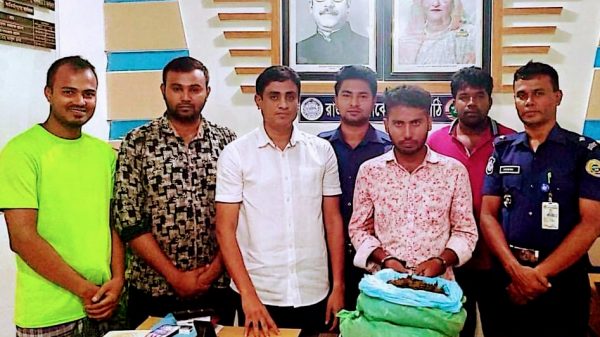 এইচ এম বাবুল জেলা প্রতিনিধি কুড়িগ্রামঃ–২২ মে রোববার কুড়িগ্রামের রাজিবপুর সোয়া ২কেজি গাঁজা সহ ২জন মাদক ব্যবসায়ীকে আটক করেছে থানা পুলিশ।রোববার রাত ৩টায় রাজিবপুর থানা পুলিশের একটি দল গোপন সংবাদের ভিত্তিতে অভিযান চালিয়েরাজিবপুর থানা পুলিশ