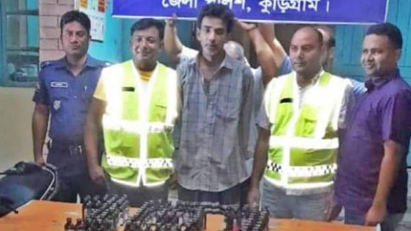 জেলা প্রতিনিধি কুড়িগ্রামঃ-২২ মে রোববার কুড়িগ্রামের উলিপুরে ১০১ বোতল ফেনসিডিলসহ বিপুল মজুমদার বিপু(৫০) নামে এক শীর্ষ মাদক ব্যবসায়ীকে আটক করেছে পুলিশ। আটক বিপুল মজুমদার বিপু উলিপুর পৌরশহরের পোষ্ট অফিস মোড় এলাকার শচীন্দ্রনাথ মজুমদারের পুত্র।পুলিশ জানায়,