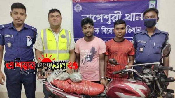 এইচ এম বাবুল জেলা প্রতিনিধি কুড়িগ্রাম:-কুড়িগ্রামের নাগেশ্বরীতে ৫ কেজি গাঁজা একটি মোটরসাইকেল সহ দুইজন চোরাকারবারীকে আটক করেছে পুলিশ। ২২ সেপ্টেম্বর বুধবার সকাল সোয়া ১০টায় উপজেলার সন্তোষপুর ইউনিয়নের ধনীগাগলা টেপুর মোড় এলাকায় নাগেশ্বরী থানা পুলিশের একটি