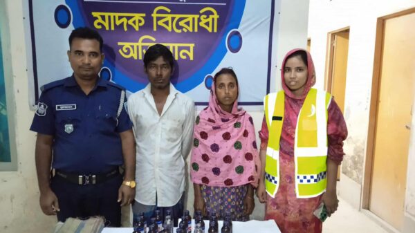 জেলা প্রতিনিধি কুড়িগ্রামঃ কুড়িগ্রামের ফুলবাড়ীতে মাদকবিরোধী অভিযান চালিয়ে ২২ বোতল ভারতীয় ইস্কাফ ও মাদক বিক্রির টাকা সহ স্বামী-স্ত্রীকে গ্রেপ্তার করেছে ফুলবাড়ী থানা পুলিশ। রবিবার (১২ অক্টোবর) দিবাগত রাতে উপজেলার উত্তর কাশিপুর এলাকায় অভিযান চালিয়ে নিজ