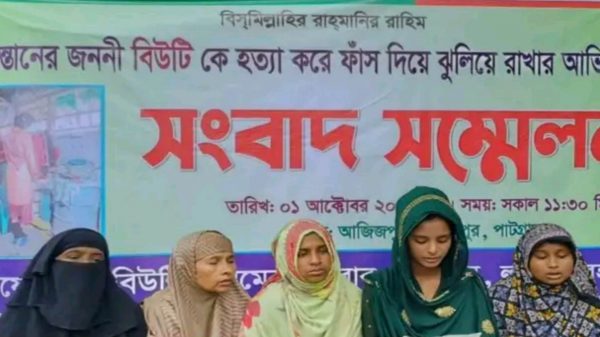 রাকিব হোসেন, লালমনিরহাট প্রতিনিধিঃ লালমনিরহাটের পাটগ্রাম উপজেলার শ্রীরামপুর ইউনিয়নের আজিজপুর এলাকায় জুয়া খেলে হেরে গৃহবধূকে হত্যার অভিযোগ স্বামী জান্নাতুলের বিরুদ্ধে। পরিবার জানায়, এটি আত্মহত্যা নয় এটি হত্যা।রবিবার (১ অক্টোবর) দুপুরে নিজ এলাকায় সংবাদ সম্মেলন করে