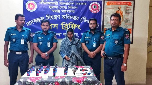 মো. নাঈম হাসান ঈমন, ঝালকাঠি প্রতিনিধিঃ ঝালকাঠির রাজাপুরে একটি দেশীয় পিস্তল, ১০ রাউন্ড গুলি ১৫ বোতল ফেনসিডিল সহ এক মাদক ব্যবসায়ী নারীকে আটক করেছে বরিশাল মাদকদ্রব্য নিয়ন্ত্রণ অধিদপ্তরের বিভাগীয় গোয়েন্দা কার্যালয়ের সদস্যরা। বুধবার রাতে উপজেলার