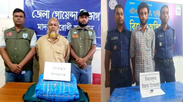 এইচ এম বাবুল জেলা প্রতিনিধি কুড়িগ্রামঃ- ২০.০৬.২০২৩ মঙ্গলবার কুড়িগ্রামে পৃথক দুইটি মাদক বিরোধী অভিযান চালিয়ে ৫ কেজি গাঁজা,২৪ পিচ ইয়াবা টেবলেট সহ ২জন মাদক ব্যবসায়ী কে আটক করেছে পুলিশ। মঙ্গলবার সকালে সদর উপজেলার কাঠালবাড়ি ইউনিয়নের