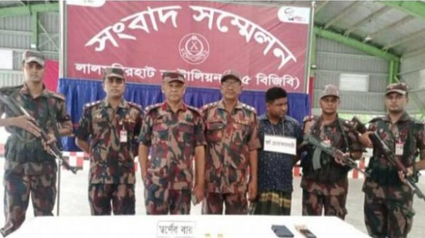 এইচ এম বাবুল জেলা প্রতিনিধি কুড়িগ্রামঃ-১২.০৫.২০২৩ শুক্রবার কুড়িগ্রামের ফুলবাড়ী সীমান্তে ১৪ টি স্বর্ণের বারসহ এক পাচারকারী যুবককে আটক করেছে বর্ডার গার্ড বাংলাদেশ (বিজিবি’র)। জব্দকৃত ১৪ টি (২৪ ক্যারেট) স্বর্ণের বারের ওজন ১৬৩৩.৩৬ গ্রাম (১৪০) ভরি।