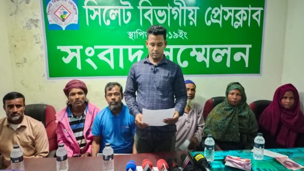 নিউজ ডেস্ক :২১ নভেম্বও ২০২২ইং সোমবার বেলা ২ ঘটিকার সময় সিলেট বিভাগীয় প্রেসক্লাবে সায়েস্তা মিয়া ও সারু মিয়া (৫৫) পিতা মৃত: তাহির উল্লাহ সাং ইসলামপুর ভোলা কোনা, সাহেবের বাজার, থানা: এয়ারপোর্ট, জেলা: সিলেট সংবাদ সম্মেলনে