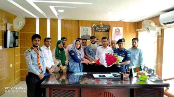 মো নাহিদ হাসান নওগাঁ জেলাঃ নওগাঁর নবাগত পুলিশ সুপার মহোদয়কে ফুল দিয়ে সংবর্ধনা জানিয়েছেন নওগাঁ জেলা রোভারের নির্বাহী কমিটির সদস্যবৃন্দ। আজ জেলা পুলিশ সুপার কার্যালয়ে নবাগত পুলিশ সুপার মুহাম্মদ রাশিদুল হক কে এই সংবর্ধনা জানানো