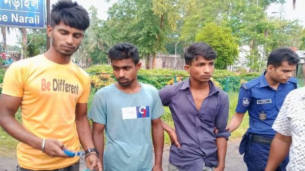 জহুরুল হক মিলু, লোহাগড়া(নড়াইল)প্রতিনিধিঃনড়াইলে স্কুলছাত্রীকে শ্লীলতাহানির দায়ে ৩ যুবককে অর্থদণ্ডসহ কারাদণ্ড প্রদান করেছে ভ্রাম্যমাণ আদালত। বৃহস্পতিবার (৯ জুন) দুপুরে নড়াইল সরকারি মহিলা কলেজের সামনে নির্বাহী ম্যাজিস্ট্রেট ও সহকারী কমিশনার (ভূমি) মো. রুহুল কুদ্দুস মোবাইল কোর্ট