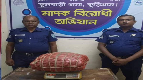 জেলা প্রতিনিধি কুড়িগ্রামঃ–১২ জুন রোববার কুড়িগ্রামের ফুলবাড়ীতে থানা পুলিশ মাদক বিরোধী অভিযান চালিয়ে ১১কেজি ৮০০গ্রাম গাঁজা উদ্ধার করেছে।গভীর রাতে ফুলবাড়ী থানা পুলিশের মাদক বিরোধী একটি দল এসআই পলাশ চন্দ্র রায় ও এসআই মোঃ রাহাত আলমের