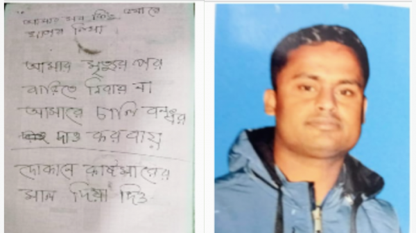 বিশ্বনাথ প্রতিনিধিঃ বিশ্বনাথের পৌর শহরের ৮নং ওয়ার্ডের জানাইয়া গ্রামের মৃত রণধীর দেবের ছেলে লিটন দেব (২৮) নামে এক যুবক আত্মহত্যা করেছেন। লিটন দেব মৃত্যুর আগে একটি সাদা কাগজে চিরকুট লিখে আত্মহত্যা করেন। চিরকুটে তার লিখায়