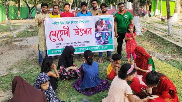 মো. নাঈম হাসান ঈমন, ঝালকাঠি প্রতিনিধিঃ ঝালকাঠিতে ইয়ুথ এ্যাকশন সোসাইটি-ইয়াসের আয়োজনে শিশুদের মাঝে পবিত্র ঈদ উল ফিতর উপলক্ষ্যে মেহেদী উৎসব- ২০২২ অনুষ্ঠিত হয়েছে। সংগঠনের উপদেষ্টা ইসরাত জাহান সোনালীর সহযোগিতায় আজ পহেলা মে’২২ রোজ শনিবার বিকাল