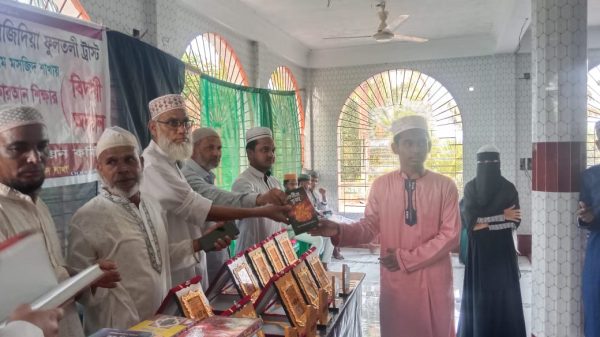 বিশ্বনাথ প্রতিনিধিঃ বিশ্বনাথ উপজেলার খাজাঞ্চি ইউনিয়নে ঐতিহ্যবাহী ভোলাগঞ্জ দারুল কুরআন হাফিজিয়া মাদ্রাসায় মাস ব্যাপী পবিত্র কুরআন প্রশিক্ষণ ও বিশুদ্ধ তেলাওয়াতের আয়োজন শেষে ছাত্র ছাত্রীদের মাঝে পুরস্কার বিতরণ ও ইফতার মাহফিল অনুষ্ঠিত হয়েছে। শুক্রবার (২৮